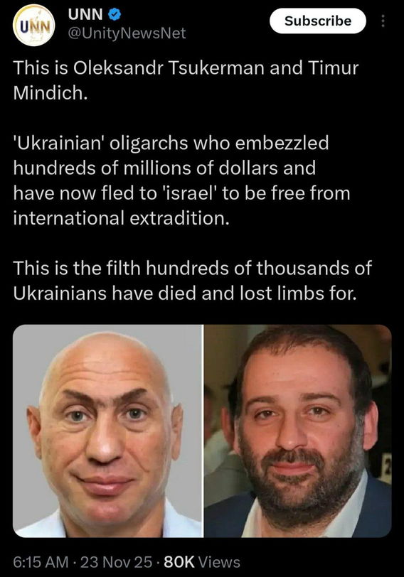 Posted by: Johan Kaspar | Nov 24 2025 9:41 utc | 198 Good afternoon, the crazy ones have no peace Posted by: Sany Dnepropetrovsk | Nov 24 2025 9:46 utc | 199 |